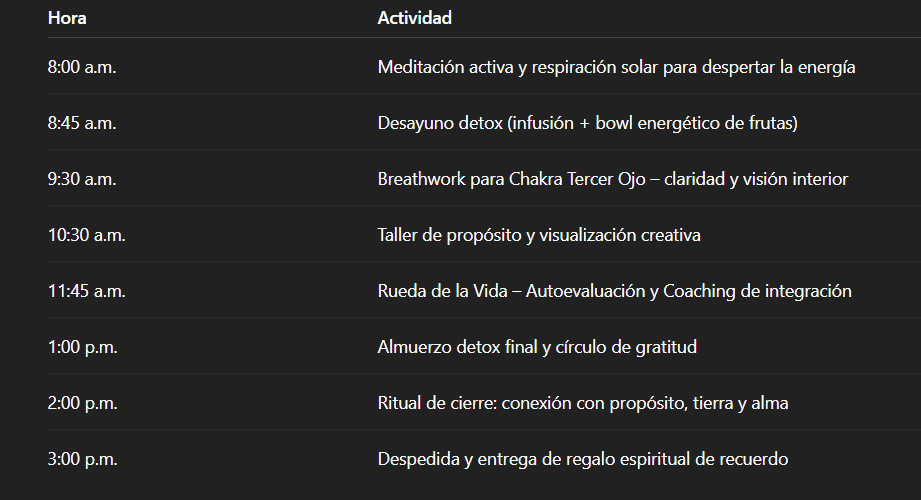 Inversión: $299 USD por persona (incluye actividades, manual, alimentación y regalo de bienvenida)